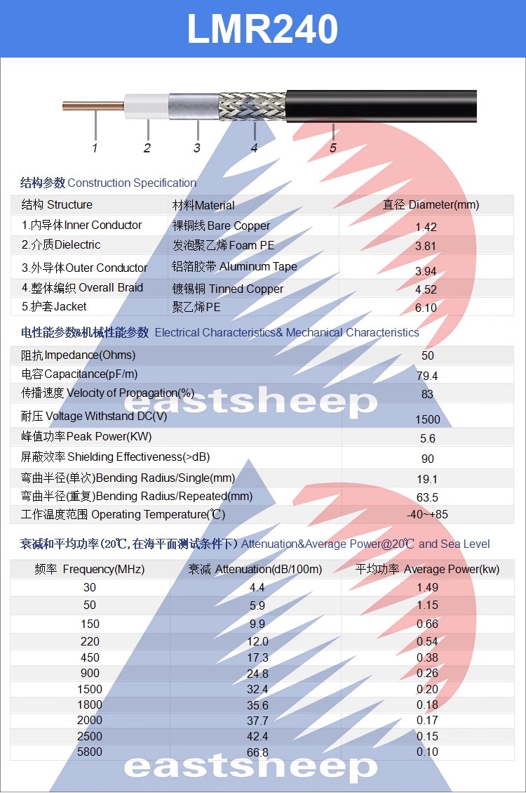 東方旭普 同軸射頻線纜 LMR-240 (相當于50-4)室內(nèi)外覆蓋常用