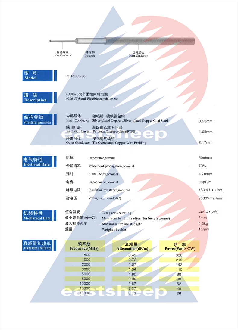 東方旭普同軸半柔射頻線纜KTR-086(RG405) 半柔 性能穩(wěn)定機(jī)箱常用 無(wú)護(hù)套