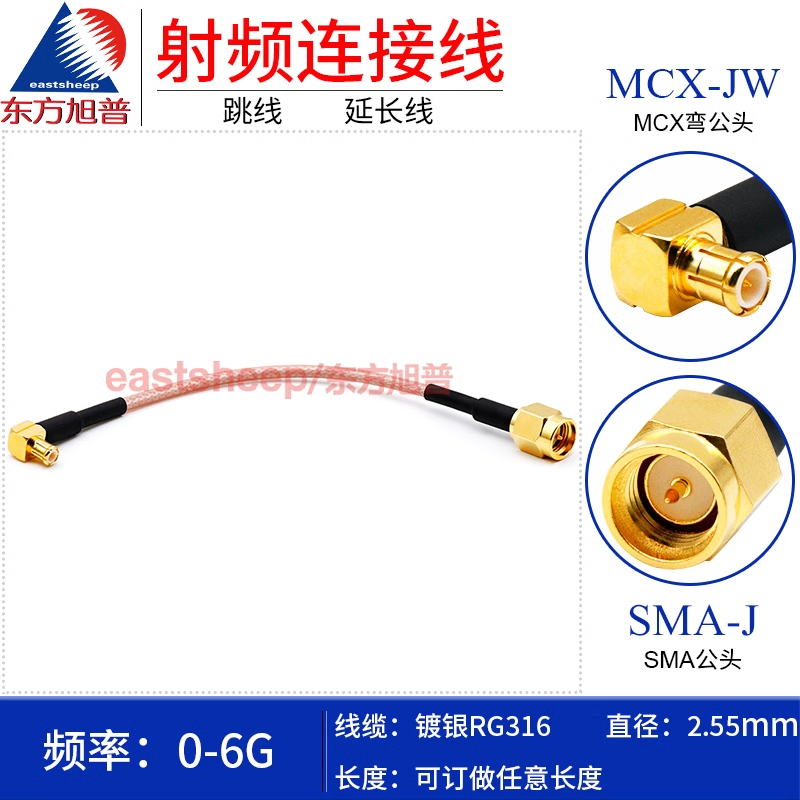 東方旭普 RG316鍍銀射頻轉接跳線SMA-J/MCX-JW MCX彎公轉SMA公頭