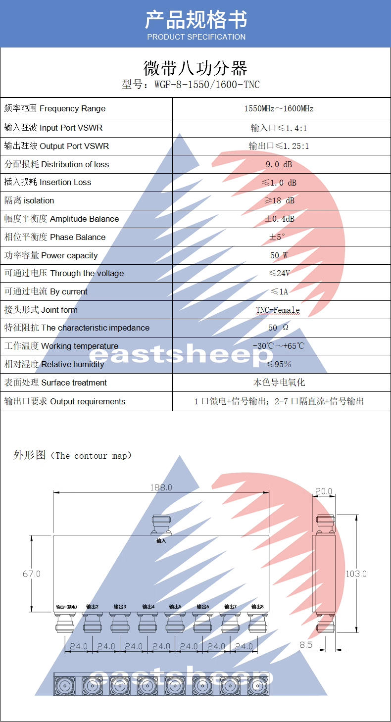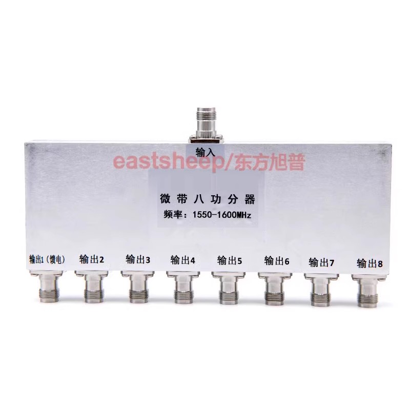 微帶一分八功分器TNC母頭1550-1600MHz寬頻低損一分八功率分配器 WGF-8-1550/1600-TNC