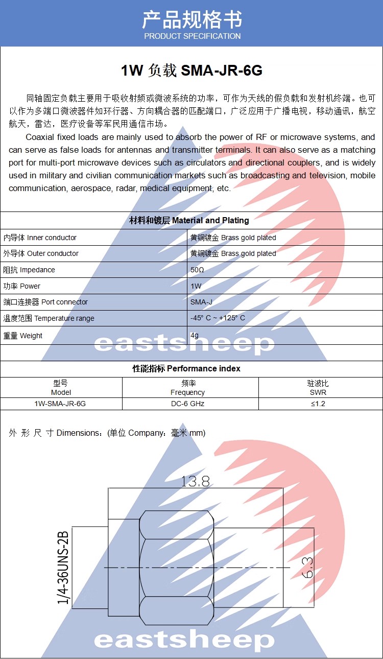 東方旭普 1W SMA終端負載 50歐姆SMA負載 SMA-J負載 SMA公 DC-6G 1W 負載 SMA-JR-6G