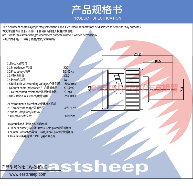 東方旭普 1W負(fù)載 BNC-J BNC終端負(fù)載 BNC公 50歐姆同軸負(fù)載 DC-4G 1W負(fù)載BNC-JR