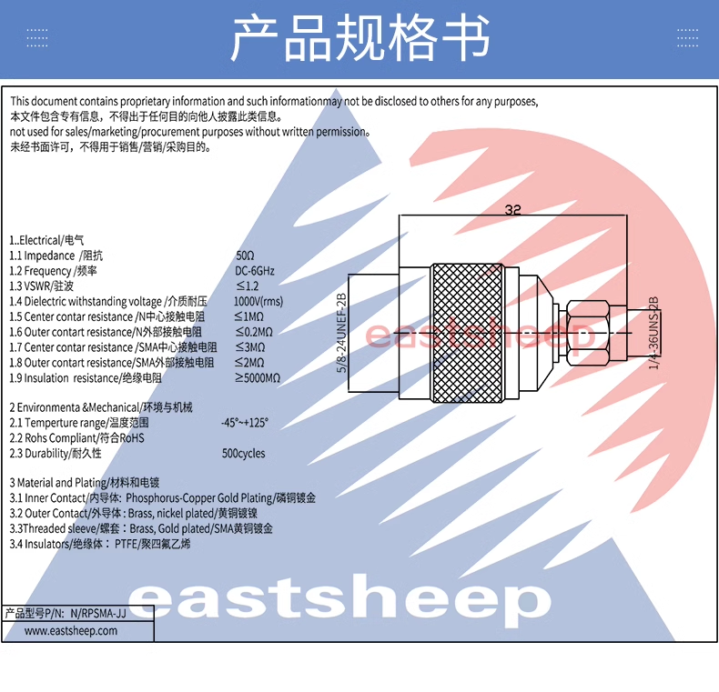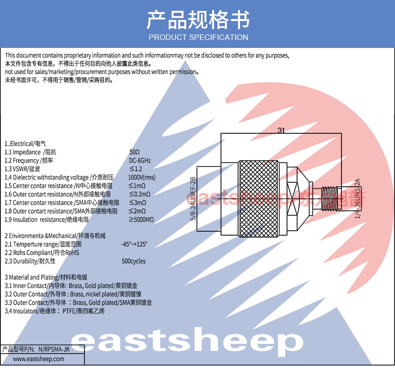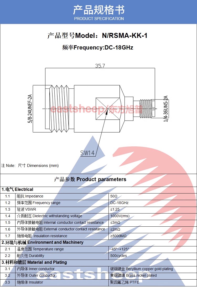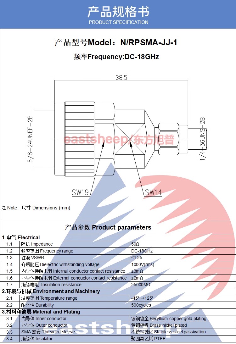 | N/RPSMA-JJ | N公—RPSMA公(公頭轉內螺紋內孔) |