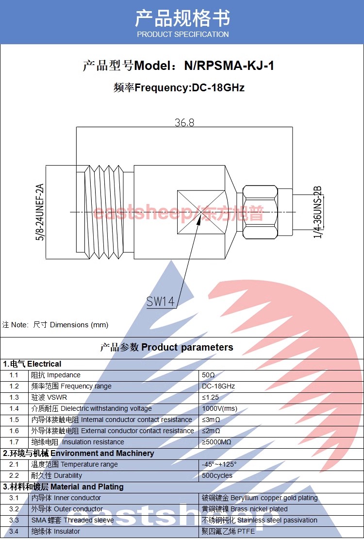 N母—RPSMA公(母頭轉外螺紋內針) |