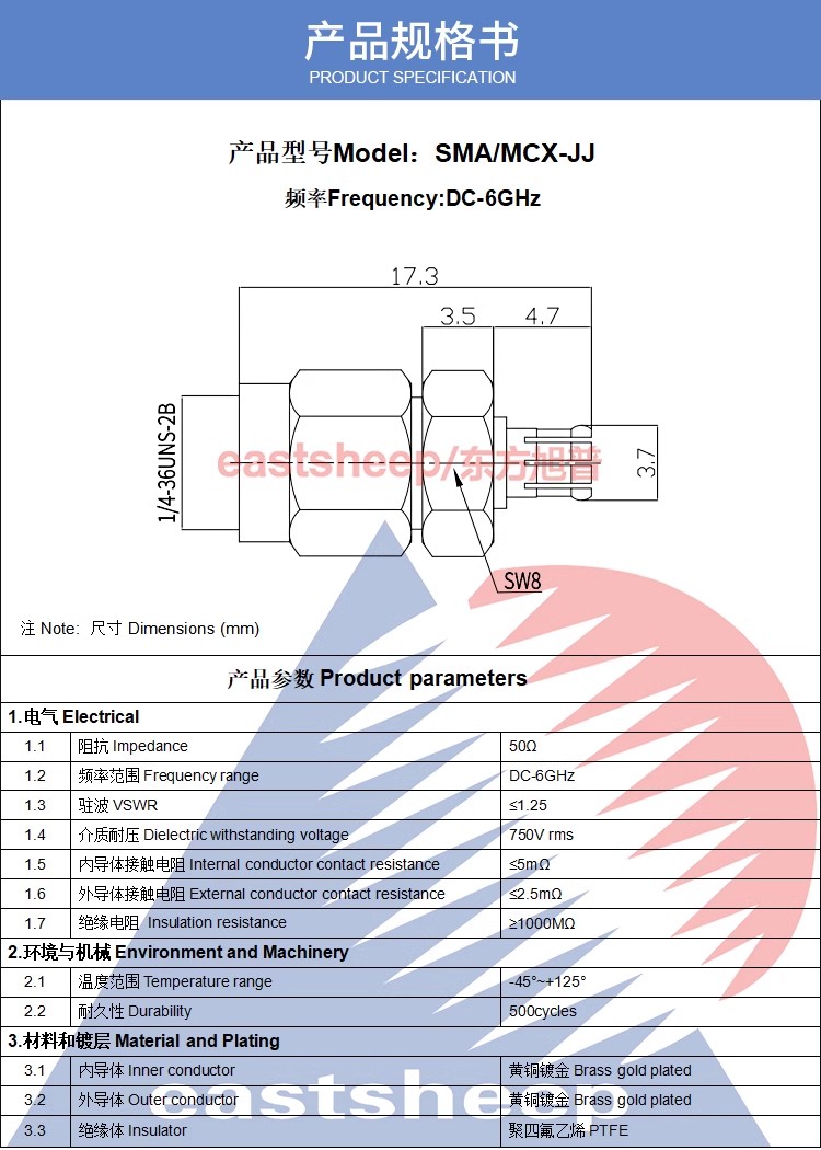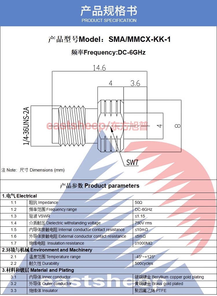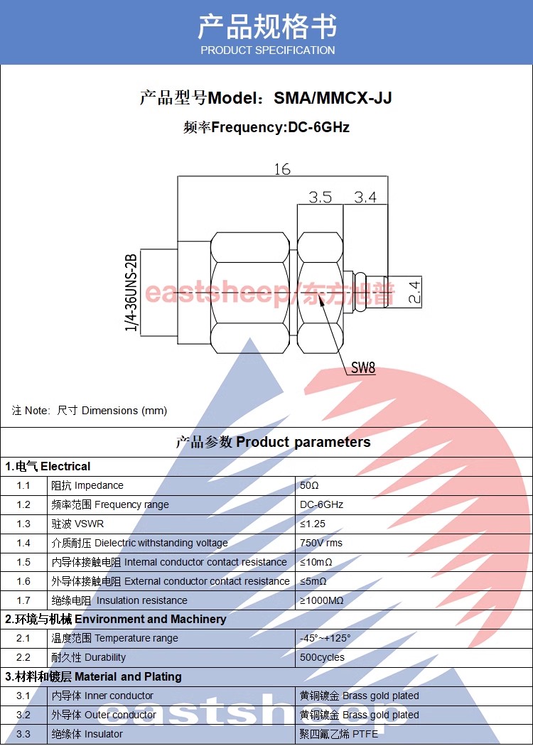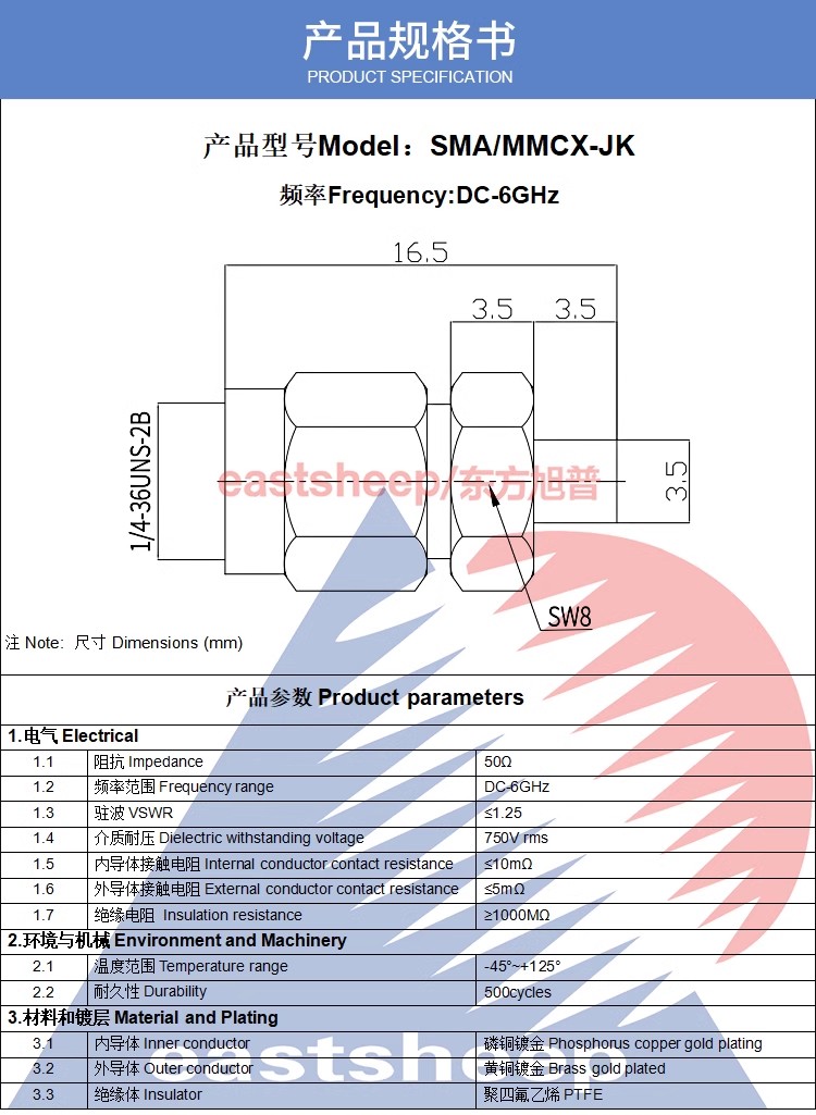 | SMA/MMCX-JJ | SMA公—MMCX公 |